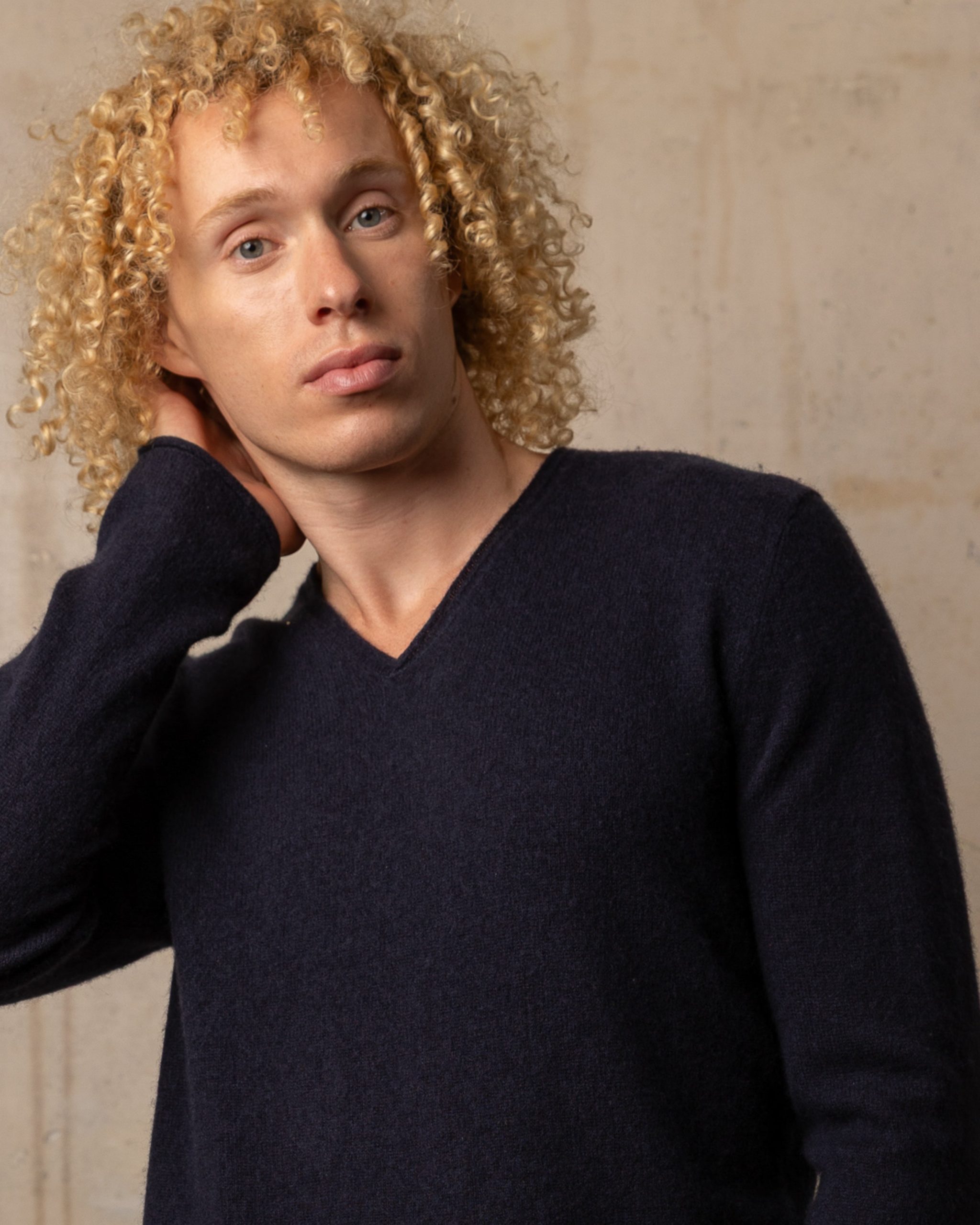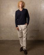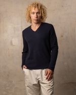Un pull col v à manches longues, coupe droite, conçu pour allier chaleur, élégance et confort