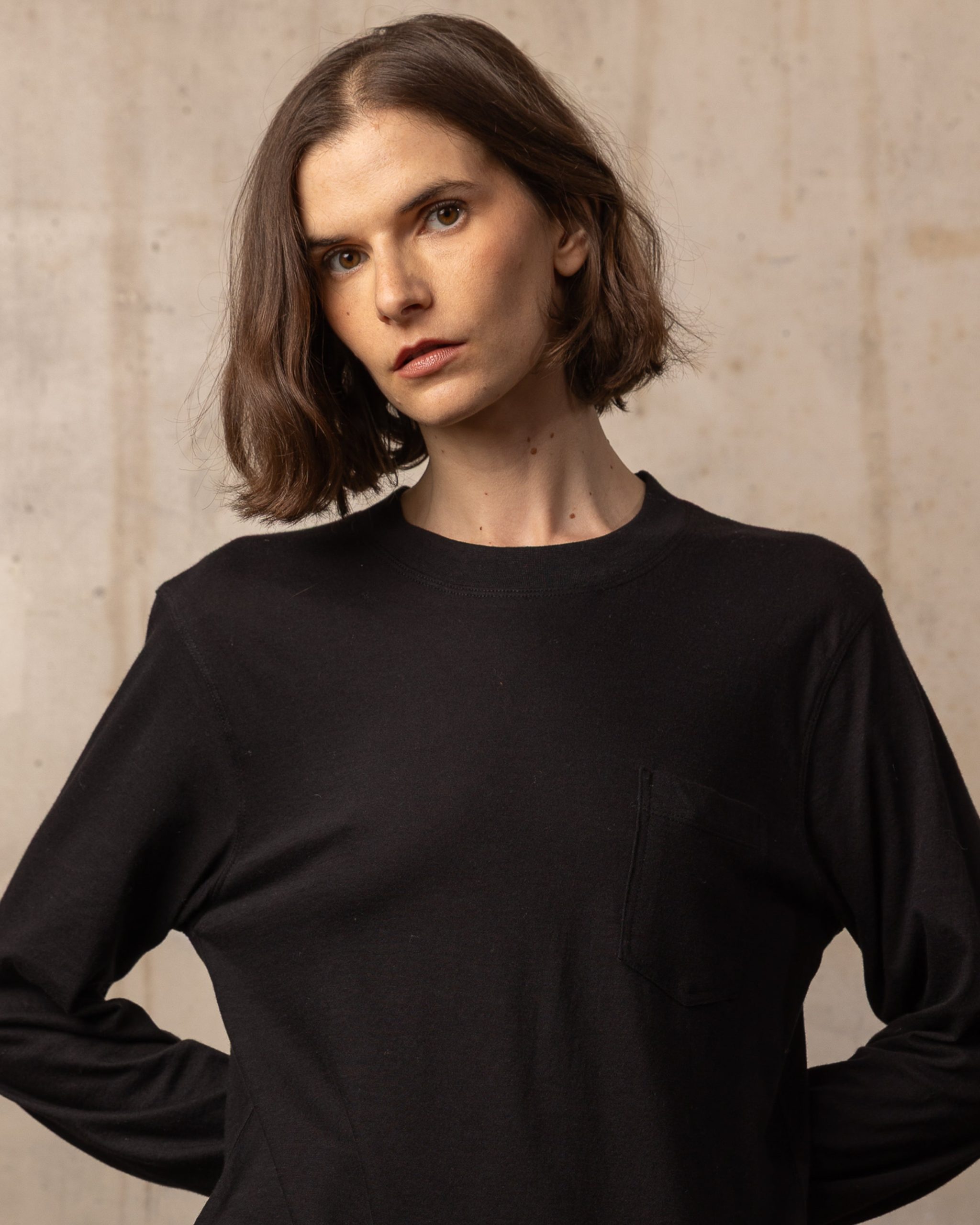 Nous conseillons un lavage en machine à maximum 30° en cycle délicat et de laver avec des couleurs similaires. Séchez le produit sur fil à l’air libre ou à plat, pas de sèche linge. Utilisez une température modérée pour repasser votre vêtement.